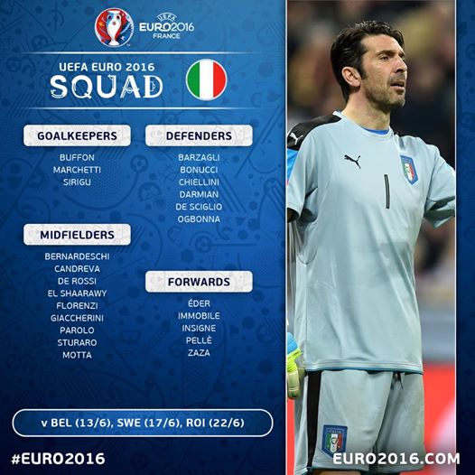 يعتبر اللاعب الإيطالي المحضرم إندريا بيرلو (36 عاما) العائد عن اعتزاله بعد خروج إيطاليا المذل من الدور الأول لكأس العالم 2014 في البرازيل، أبرز الغائبين عن تشكيلة الأدزوري.