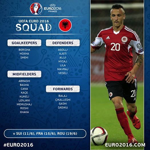 تشكيلة منتخب ألبانيا، المشارك لأول مرة في العرس الأوروبي الكبير: