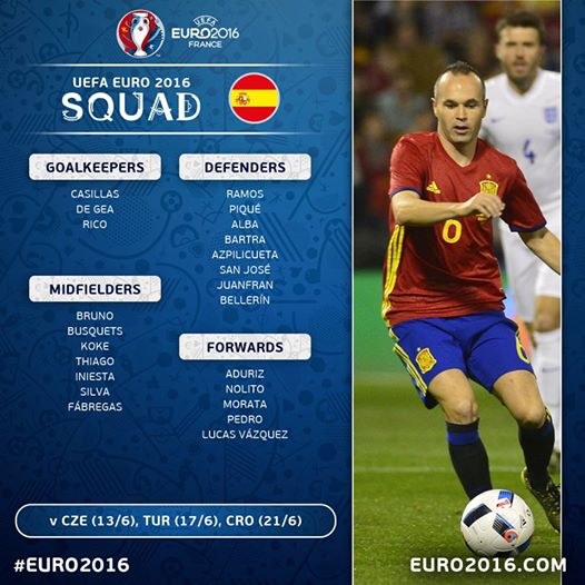 وفيما يلي قائمة المنتخب الإسباني للدفاع عن لقبه في "يورو 2016":