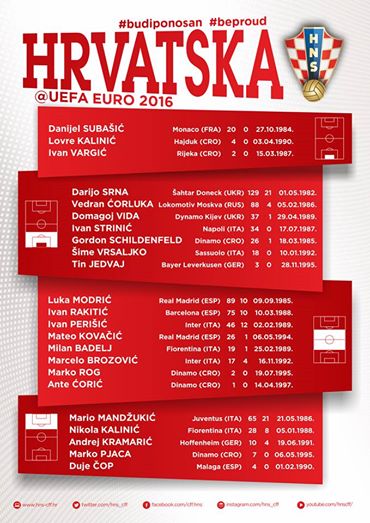 وفيما يلي أسماء اللاعبين الـ 23، الذين استدعاهم أنتي تشاتشيتش، المدير الفني لمنتخب كرواتيا، لخوض نهائيات بطولة القارة العجوز: